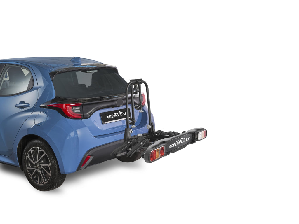 Entdecken Sie jetzt den Green Valley Discovery 3 Fahrradträger. Dieser Fahrradträger ist aus hochwertigem Stahl gefertigt und erfüllt die Sicherheitsnormen. Die maximale Tragfähigkeit des Trägers beträgt 60 kg und pro Fahrrad 30 kg. Der Träger ist mit einem Kippmechanismus ausgestattet, um Zugang zum Kofferraum zu erhalten, selbst mit Fahrrädern, die bereits auf dem Träger platziert sind. Darüber hinaus verfügt der Träger über ein Diebstahlsicherungssystem an der Kupplung, sodass Sie beruhigt auf Reisen gehen können.