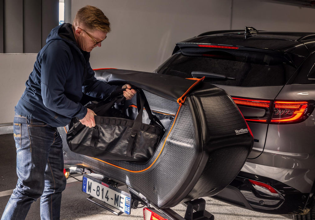Die Senja Box - Pure Instinct komplett ist eine Anhängerkupplungsbox in Kombination mit einem Fahrradträger. Die Anhängerkupplungsbox kann einfach auf dem Fahrradträger montiert und nach Gebrauch wieder zusammengefaltet werden. Sie können problemlos 300 zusätzliche Liter auf Reisen mitnehmen, und wenn Sie keinen Gepäckraum benötigen, können Sie den Träger auch zum Transport von zwei Fahrrädern verwenden.