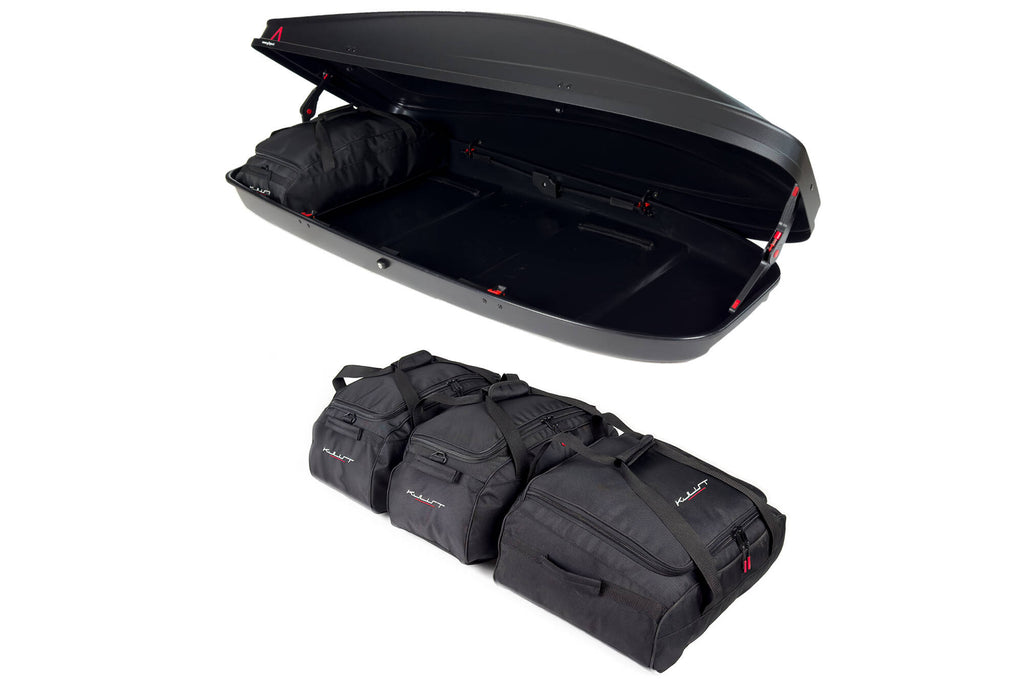 Maximieren Sie den Raum Ihrer Dachbox mit dem maßgeschneiderten KJUST Taschen-Set. Diese Taschen nutzen den Raum optimal aus, sorgen für effizientes Verpacken und sicheren Transport. Mit diesem Taschen-Set müssen Sie sich nie mehr um die Dachbox sorgen.