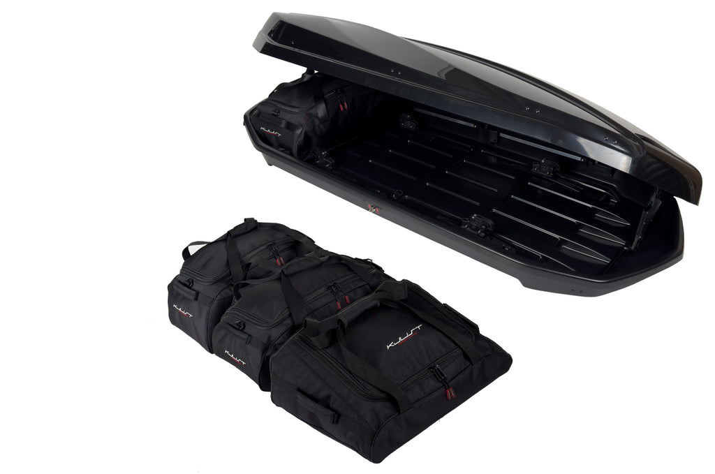 Maximaliseer de ruimte van je Junior Strike 440 met de op maat gemaakte KJUST tassenset. De vier tassen benutten de ruimte optimaal, zorgen voor efficiënte verpakking en veilig transport. Met deze tassenset hoef je je nooit meer zorgen te maken om de dakkoffer.