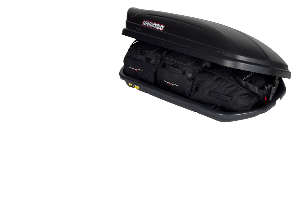 Maximaliseer de ruimte van je Menabo Marathon 320 met de op maat gemaakte KJUST tassenset. De drie tassen benutten de ruimte optimaal, zorgen voor efficiënte verpakking en veilig transport. Met deze tassenset hoef je je nooit meer zorgen te maken om de dakkoffer.