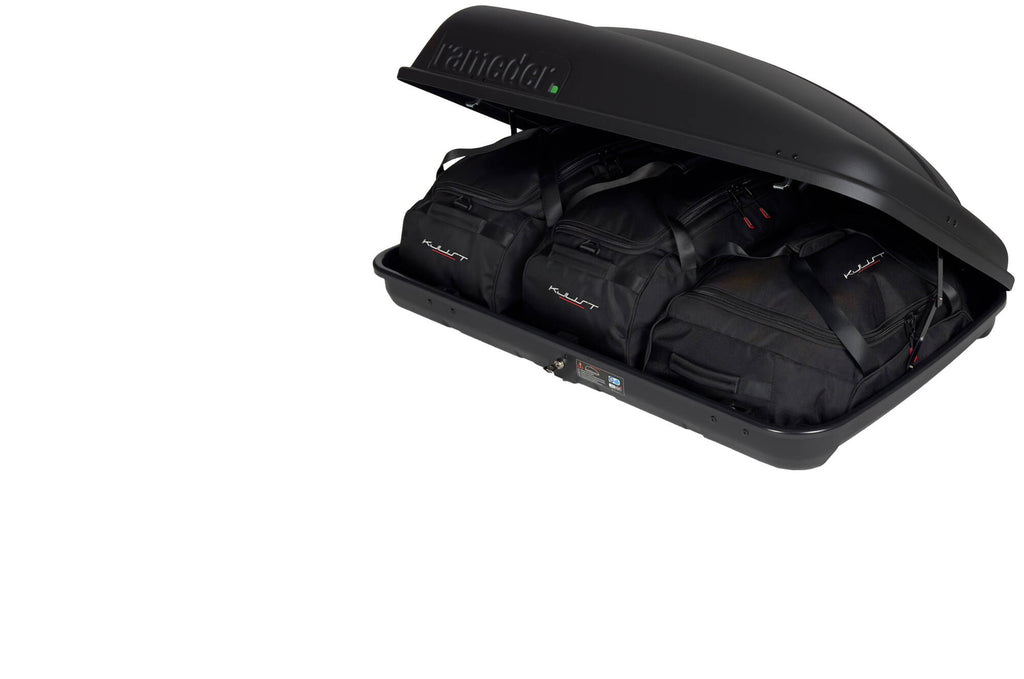 Maximaliseer de ruimte van je Rameder Topbox 350 met de op maat gemaakte KJUST tassenset. De drie tassen benutten de ruimte optimaal, zorgen voor efficiënte verpakking en veilig transport. Met deze tassenset hoef je je nooit meer zorgen te maken om de dakkoffer.