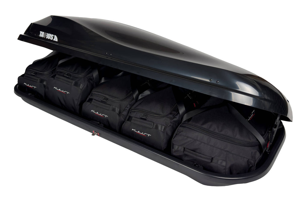Maximaliseer de ruimte van je Taurus Altro 500 met de op maat gemaakte KJUST tassenset. De vijf tassen benutten de ruimte optimaal, zorgen voor efficiënte verpakking en veilig transport. Met deze tassenset hoef je je nooit meer zorgen te maken om de dakkoffer.