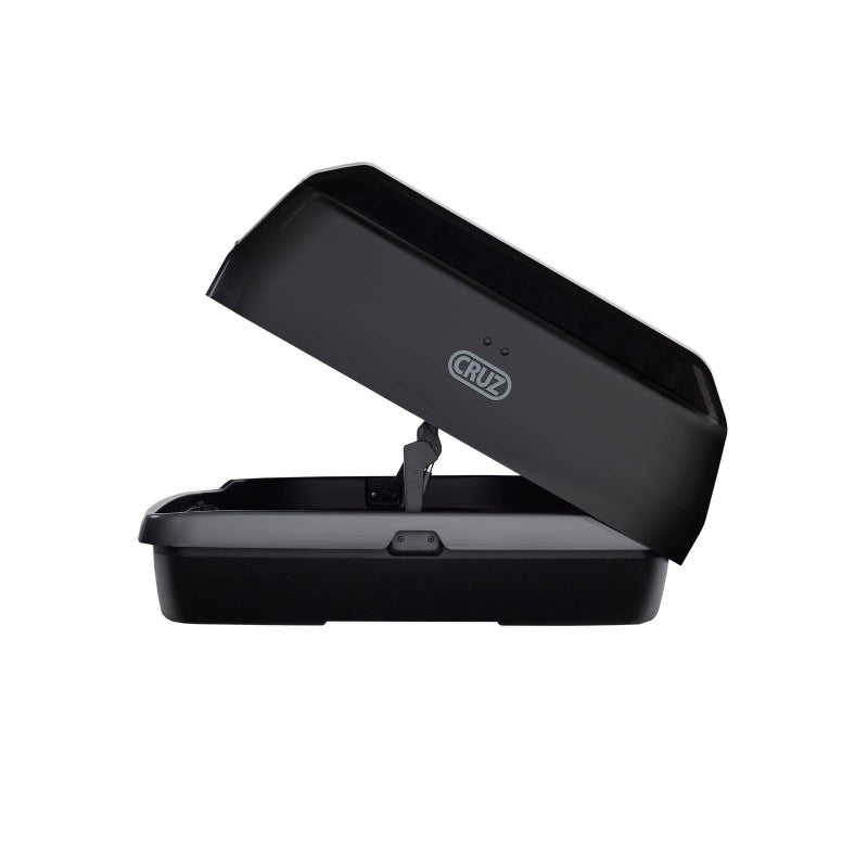 De CRUZ Paddock Elite combineert een strak design met gebruiksgemak en relatief veel ruimte. Dankzij het Quick 100 montagesysteem monteer je de dakkoffer binnen enkele seconden veilig op de dakdragers zonder gereedschap. De dakkoffer is aan beide zijden te openen waardoor je eenvoudig bij je bagage kunt. Scharnieren met schokdempers zorgen voor soepel openen en sluiten. De centrale vergrendeling sluit op drie punten voor extra veiligheid. Binnenin houden spanbanden de bagage stevig op zijn plek. De dakkoffer is compatibel met alle dakdragers en ideaal voor vakanties, wintersport of weekendjes weg.