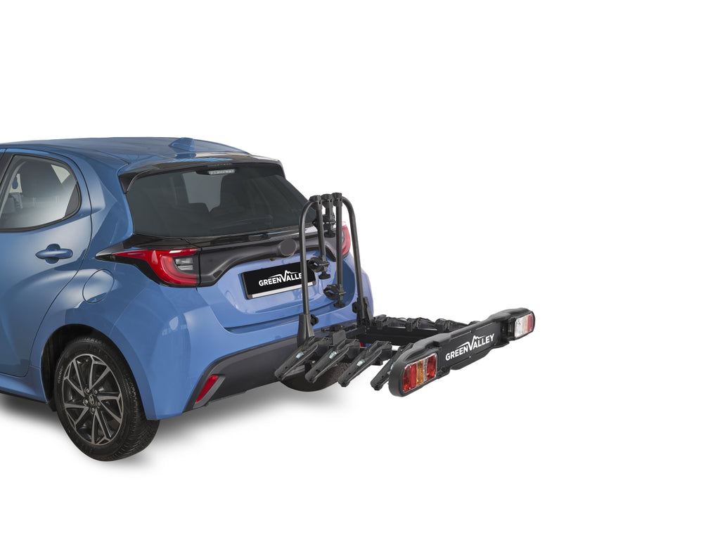 Beleef nu de Green Valley Discovery 4 fietsendrager. Deze drager is geschikt voor vier fietsen en kan ook E-bikes dragen. De maximale draaglast is 60 kg en 30 kg per fiets. Het is makkelijk om te monteren zonder extra gereedschap. Ook is de drager voorzien van een anti diefstal systeem op de koppeling en kan je altijd bij de kofferbak, want de drager is voorzien van een kantelsysteem. Dit zorgt ervoor dat je zelfs met de fietsen op de drager bij uw kofferbak kan.