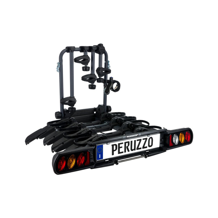De Peruzzo Pure Instinct 4 is de ideale fietsendrager voor het eenvoudig vervoeren van vier fietsen. Met een draagvermogen van 60 kg is hij geschikt voor elektrische fietsen, mountainbikes, racefietsen, stads- en kinderfietsen. De afsluitbare frameklemmen houden je fietsen stevig op hun plek. Dankzij het dubbele anti-diefstalsysteem met een slot op de koppeling én het frame, zijn zowel je fietsen als de drager goed beveiligd. Dankzij het Quick-Release systeem koppel je de drager snel los, en na gebruik klap je hem volledig in voor eenvoudige opslag.