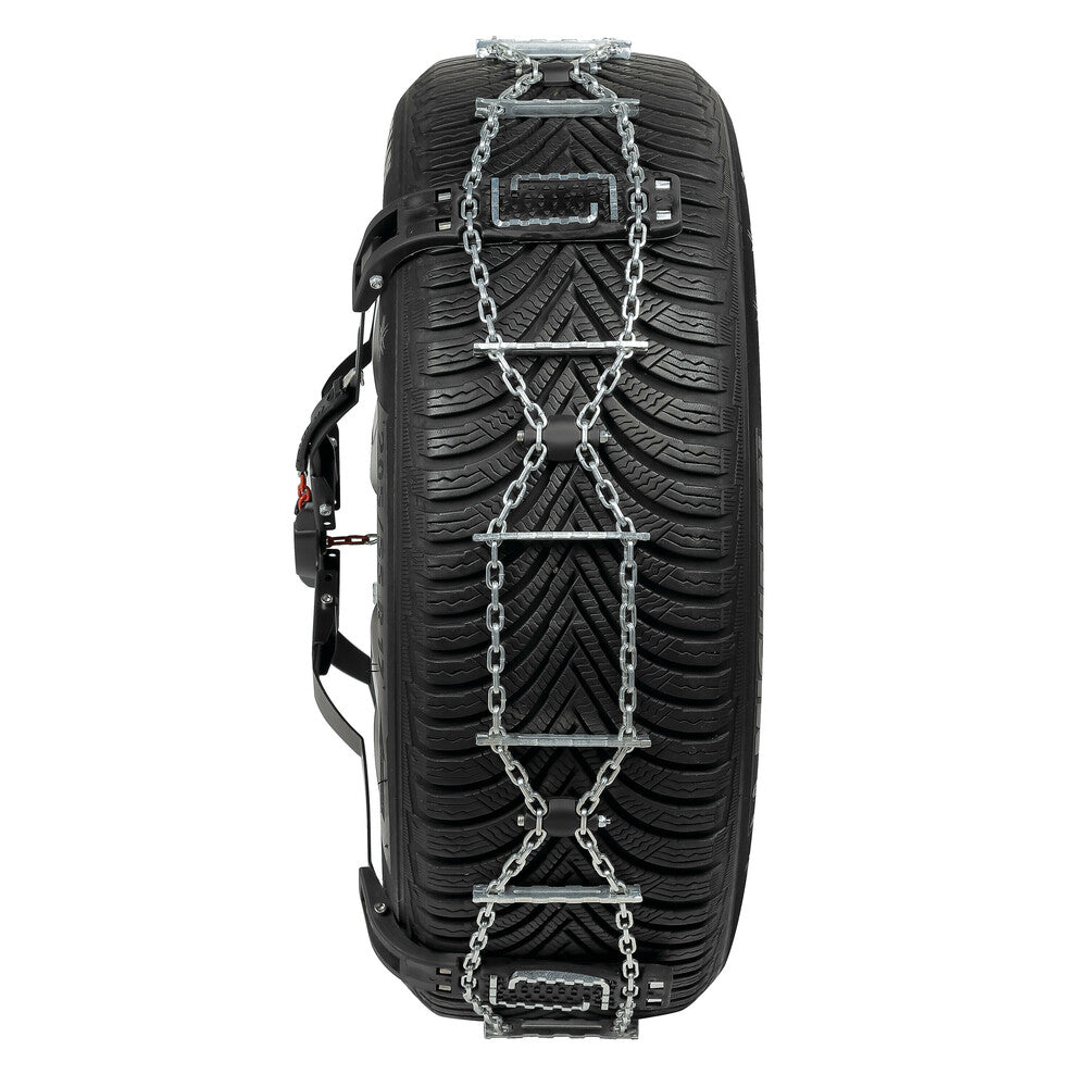 Deze hoogwaardige loopvlakkettingen zijn speciaal ontworpen voor auto’s waarbij traditionele sneeuwkettingen niet mogelijk zijn, zoals moderne elektrische auto's of voertuigen met beperkte wielruimte. Dankzij het externe montagesysteem, via de montage op een van de wielbouten, is er geen ruimte in de wielkast meer nodig.