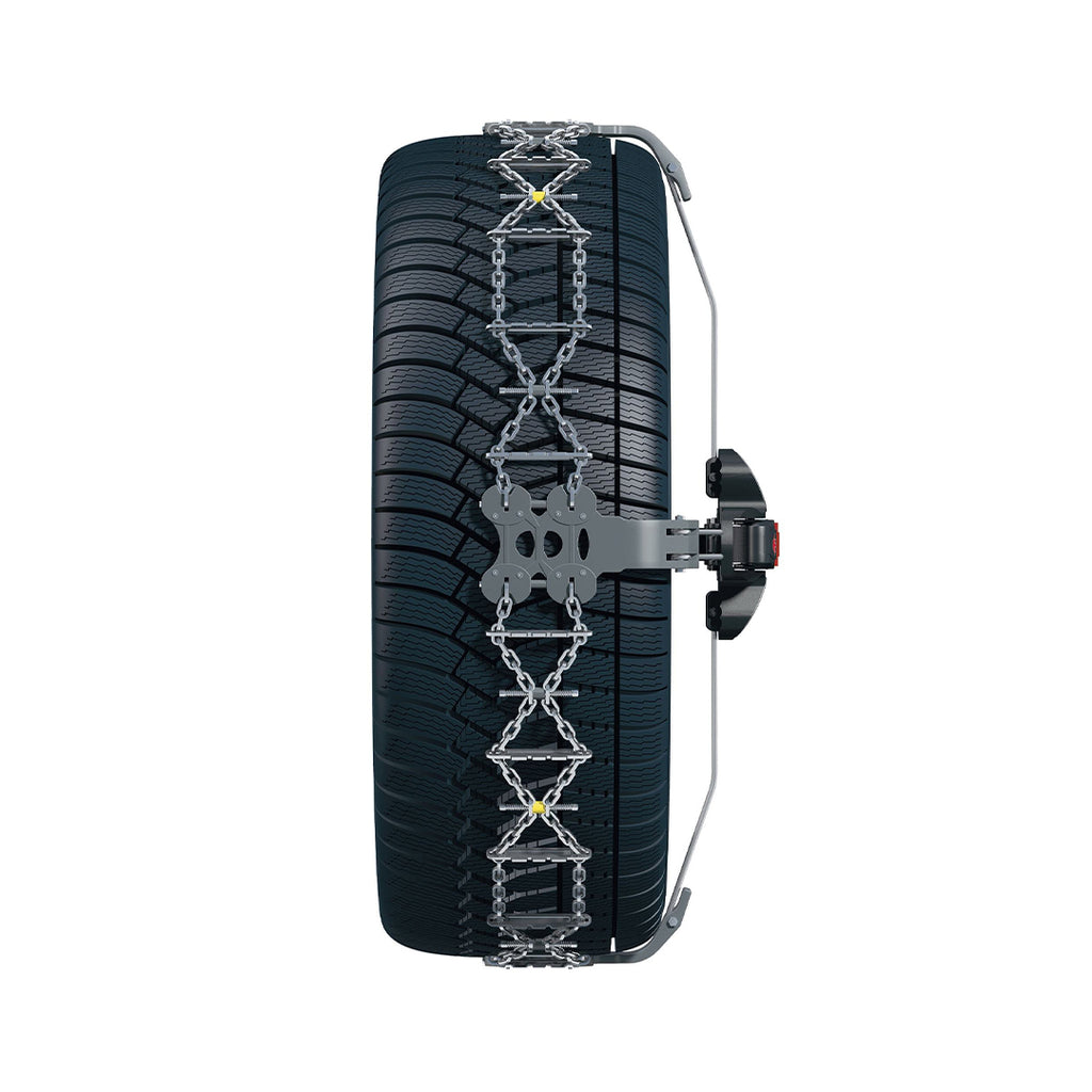 De König K-Summit onderscheidt zich door zijn universele adapterset, waardoor deze sneeuwketting op vrijwel elk voertuig met standaard wielbouten past. Dit maakt hem bijzonder flexibel en geschikt voor een breed scala aan auto's, inclusief SUV's en voertuigen met weinig ruimte in de wielkast. Dankzij het innovatieve ratelsysteem is montage eenvoudig en snel, zonder dat er ruimte achter het wiel nodig is. De ketting biedt uitstekende grip op besneeuwde en ijzige wegen en is een betrouwbare keuze voor automobilisten die op zoek zijn naar een premium oplossing voor winterse omstandigheden.