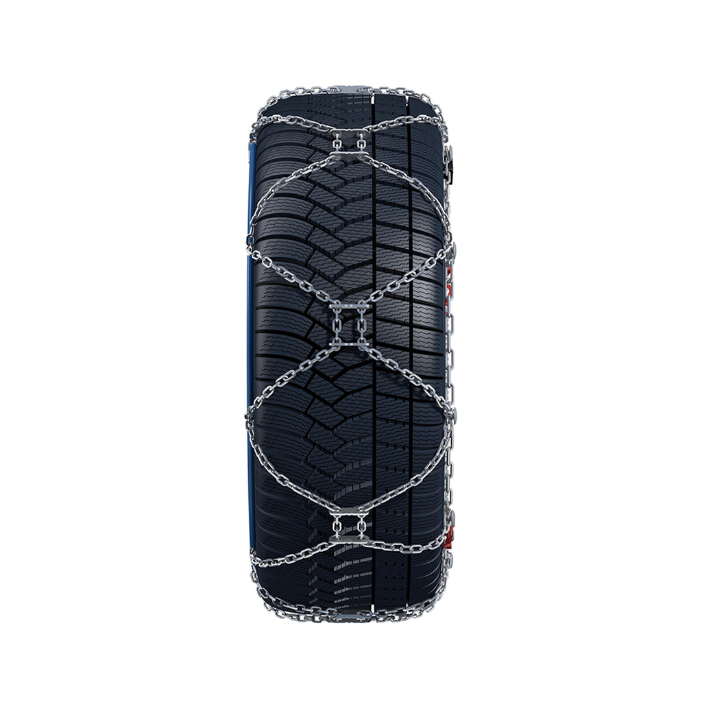 De König XG-Cross 9mm is een hoogwaardige sneeuwketting die speciaal is ontworpen voor SUV's en crossovers met beperkte ruimte in de wielkast. Het zelfspannende systeem maakt montage en demontage eenvoudig, zonder de noodzaak van handmatig naspannen. De ketting biedt goede grip en is een betrouwbare keuze voor winterse omstandigheden.