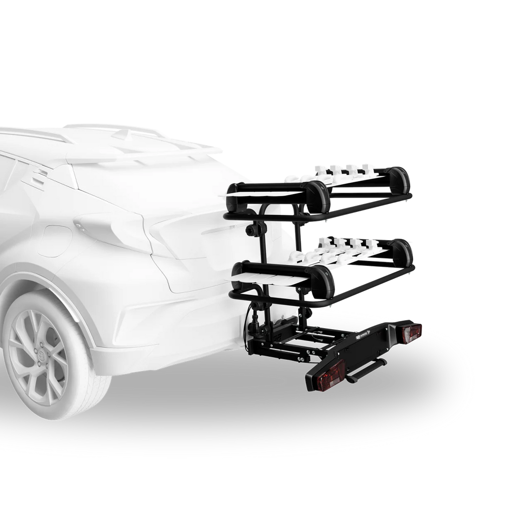 De Peruzzo Extra Ski en Snowboard houder is een handige toevoeging voor wie meer ruimte nodig heeft om ski's of snowboards te vervoeren. Deze houder biedt de mogelijkheid om extra capaciteit toe te voegen aan bestaande dragers. Met deze uitbreiding kunt u maximaal 8 extra paar ski's of 4 snowboards meenemen, ideaal voor wintersportliefhebbers die in groepsverband reizen of gewoon meer opbergruimte nodig hebben. Het draagvlak van de skidrager is 40cm. De houder is ontworpen om snel en eenvoudig op de bestaande Peruzzo drager te monteren, zonder dat extra gereedschap nodig is, wat zorgt voor gebruiksgemak en flexibiliteit. Dit maakt het een perfecte keuze voor skiërs of snowboarders die zowel efficiëntie als veiligheid waarderen. Bovendien is de houder compatibel met diverse modellen, waardoor hij breed inzetbaar is.