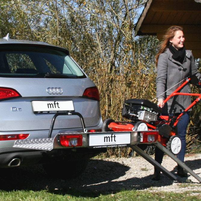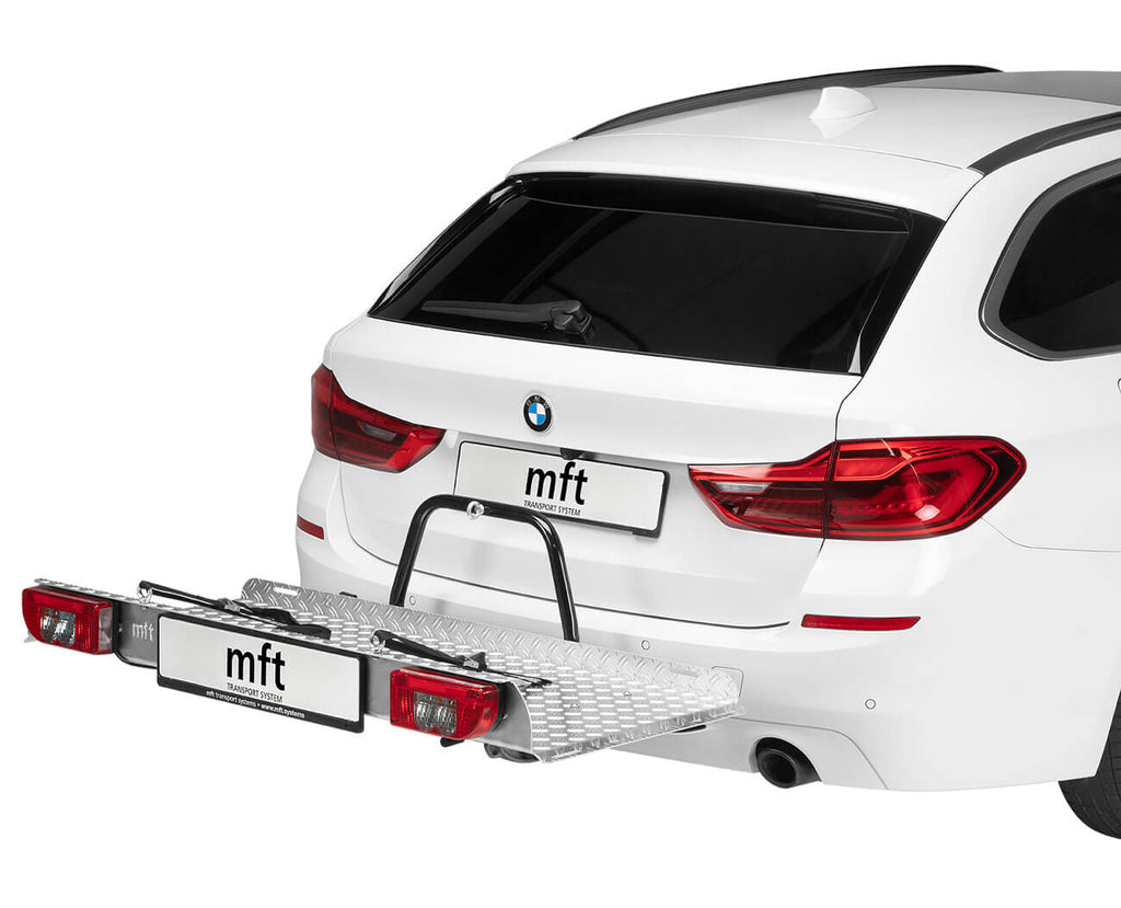 De MFT Aluminium transportplatform compleet is een slimme oplossing waarmee je je trekhaak verandert in extra bagageruimte. De basis is de BackCarrier, perfect in combinatie met het aluminium transportplatform. Samen heeft het een maximaal draagvermogen van 66KG. Dankzij het kantelmechanisme blijft je kofferbak altijd bereikbaar, zelfs als de box gemonteerd is, je kantelt het systeem makkelijk met één hendel. Monteer je het Aluminium Transportplatform op de BackCarrier, dan krijg je een handig laadvlak van 540 x 1300 mm voor spullen zoals tuingereedschap, bouwmateriaal of een rolstoel. Het stevige aluminium platform heeft een geribbeld oppervlak en verhoogde beugel, zodat alles goed op z’n plek blijft. Met handige bevestigingsogen zet je de lading veilig vast.