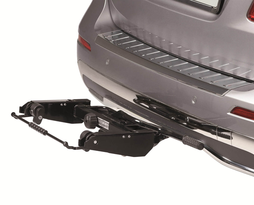 De BackCarrier vormt de basis van het slimme Back-System en tovert je trekhaak om tot extra bagageruimte. Met een draagvermogen van maar liefst 82,5 kg is dit draagsysteem perfect afgestemd op de BackBox. Het kantelmechanisme zorgt ervoor dat je altijd makkelijk toegang houdt tot de kofferbak, zelfs wanneer de BackBox is gemonteerd. Eén simpele hendelbeweging volstaat om het geheel naar voren te kantelen.