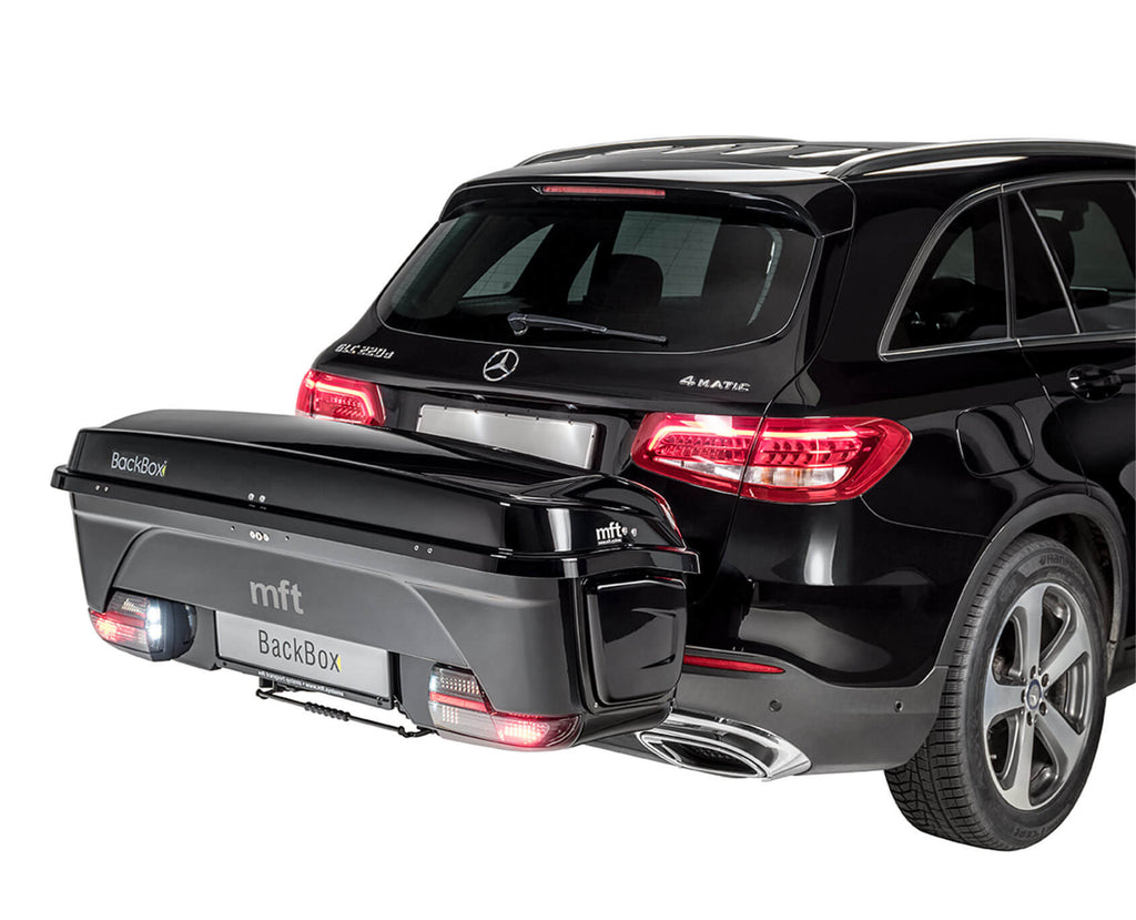 De BackBox is de bagagebox die meegroeit met jouw behoeften. Je monteert ‘m eenvoudig op de trekhaak met behulp van de BackCarrier. Met een variabele inhoud vanaf 300 tot 326 liter met de inzetstukken biedt het ruimte aan bijvoorbeeld 4 paar ski’s of 2 grote golftassen. Dankzij verwisselbare zijpanelen kun je zelfs ski’s tot 187 cm vervoeren. De box is gemaakt van hoogglanzend, krasbestendig materiaal en uitgerust met LED-verlichting, spanbanden, schuimrubberen inserts en afwateringsventielen voor optimale bescherming en gebruiksgemak. Let op: maximale snelheid is 160 km/u. Bij krachtige voertuigen met een ongunstige uitlaatpositie kan extra hitteschild nodig zijn – neem hiervoor contact op met onze klantenservice.
